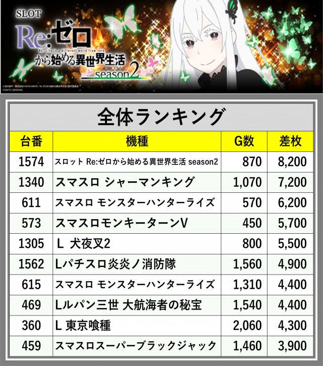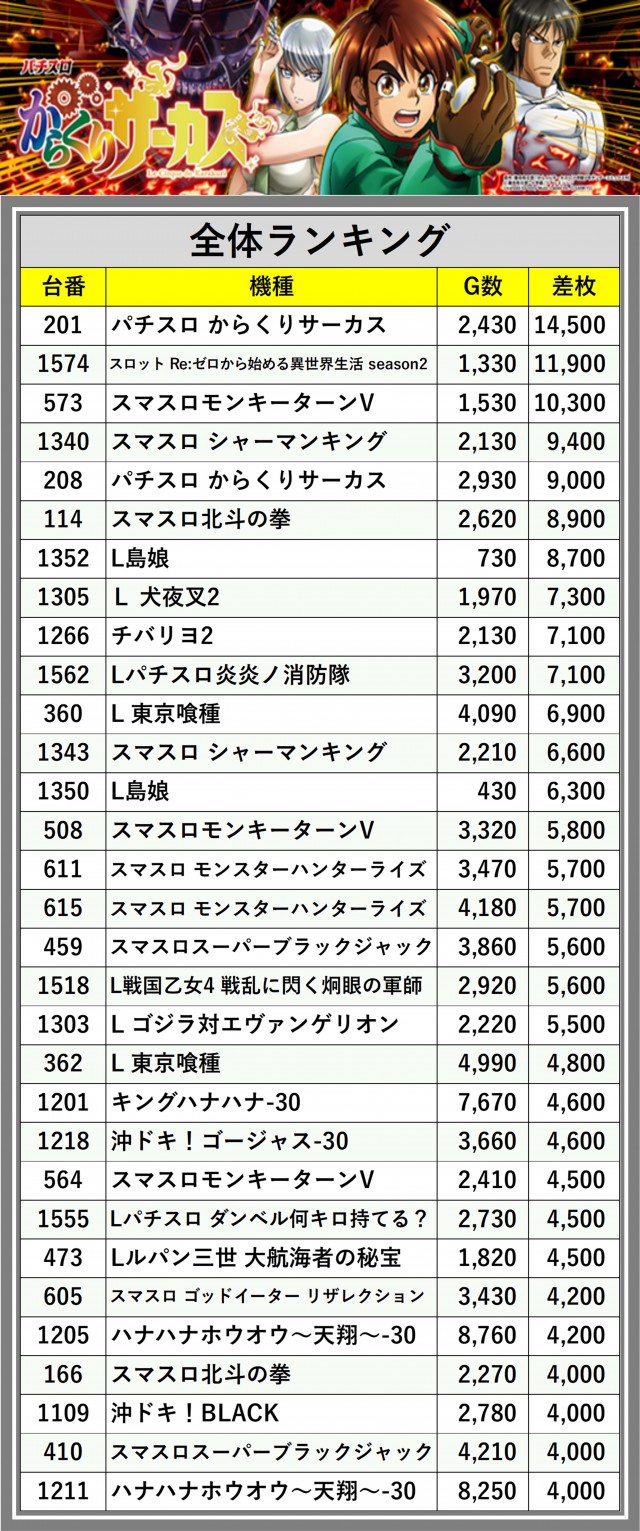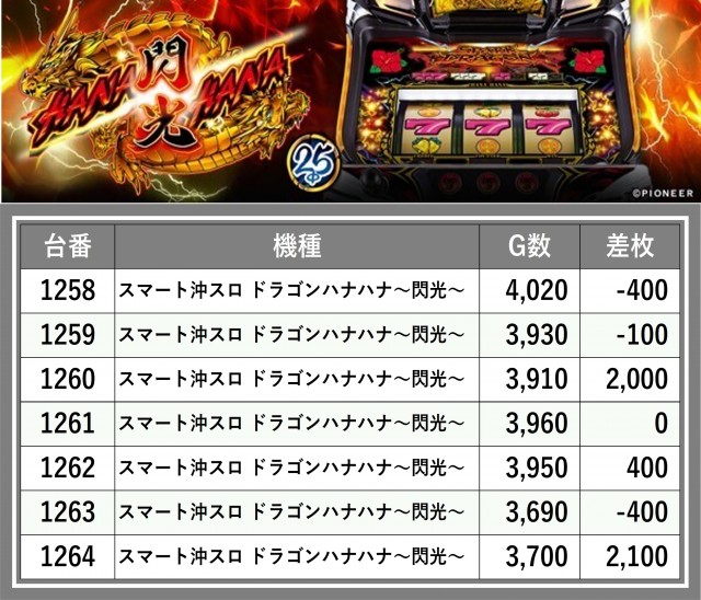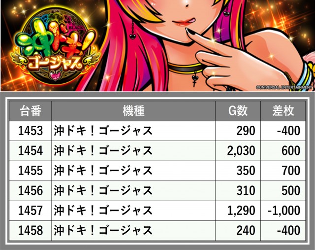 厳選された取材対象機種をはじめ、その他スロット全体から好記録が飛び出した!プレイヤーが楽しんだ1日を下記データにて振り返ってみて欲しい。