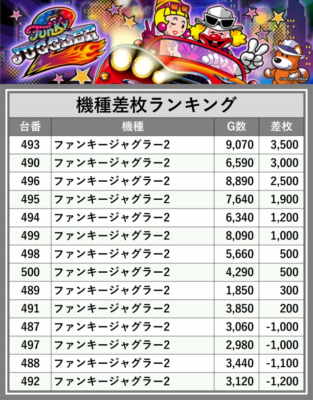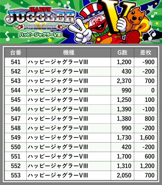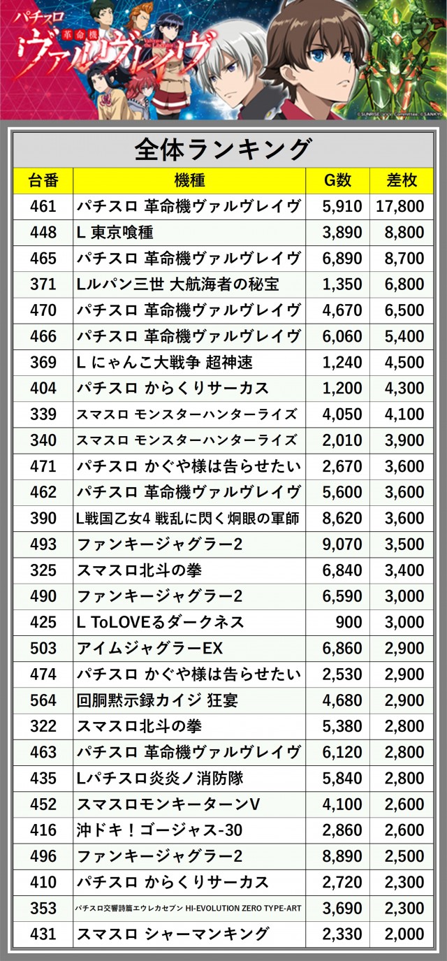 厳選された取材対象機種をはじめ、その他スロット全体から好記録が飛び出した!プレイヤーが楽しんだ1日を下記データにて振り返ってみて欲しい。