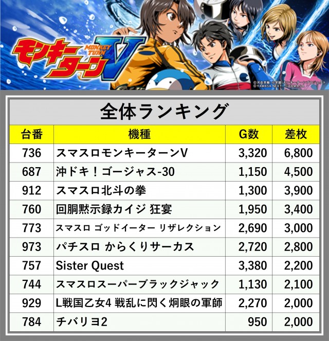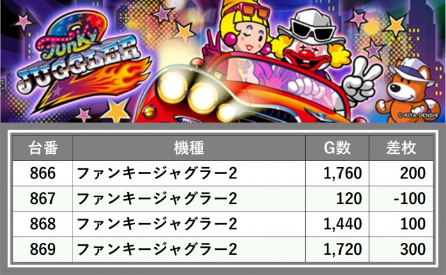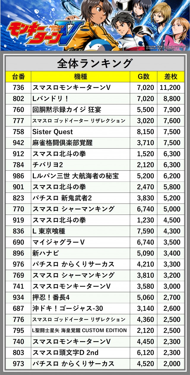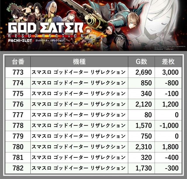 厳選された取材対象機種をはじめ、その他スロット全体から好記録が飛び出した!プレイヤーが楽しんだ1日を下記データにて振り返ってみて欲しい。