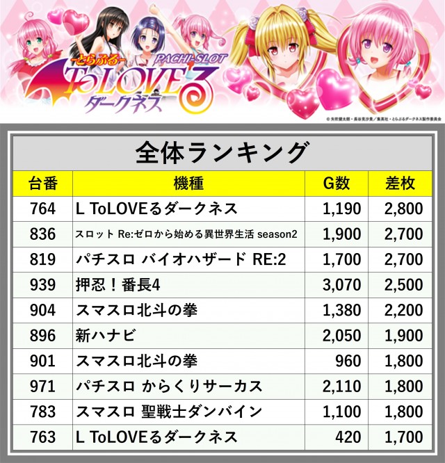 厳選された取材対象機種をはじめ、その他スロット全体から好記録が飛び出した!プレイヤーが楽しんだ1日を下記データにて振り返ってみて欲しい。