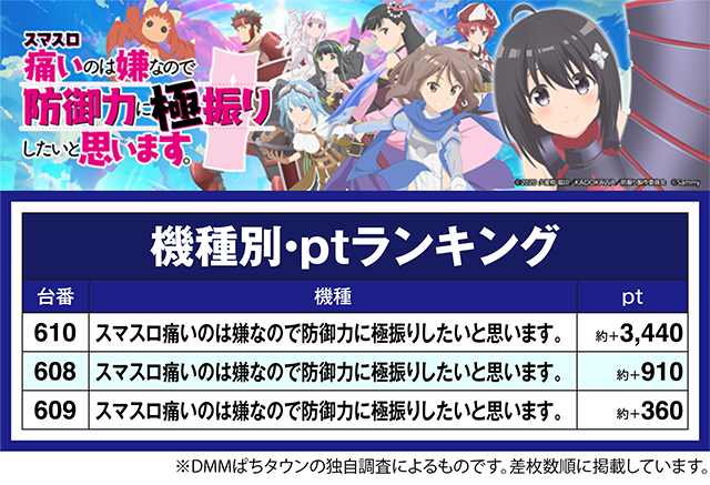 「スマスロ痛いのは嫌なので防御力に極振りしたいと思います。」では、610番台が約+3,400ptオーバー。