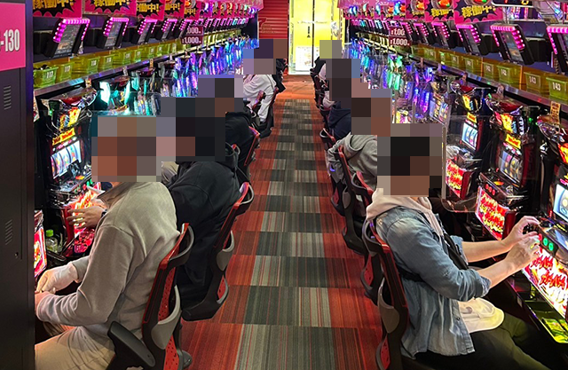 沖スロを中心に活気づいていた「パールショップともえ7G・E・T葉山店」。
