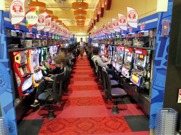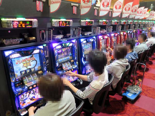 5円パチスロも盛況。「パチスロ マクロスフロンティア3」や「パチスロ TVアニメーション弱虫ペダル」など、機種の性能を最大限に発揮しているプレイヤーの姿を確認している。