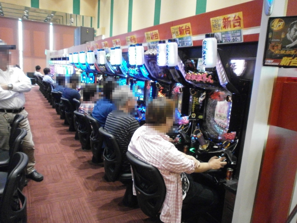 14時頃の4円パチンコをみると、新台「CRぱちんこ必殺仕事人Ⅴ」が大盛況。機種の醍醐味を堪能しているような姿が多く、華やかなムードが伝わってきた。