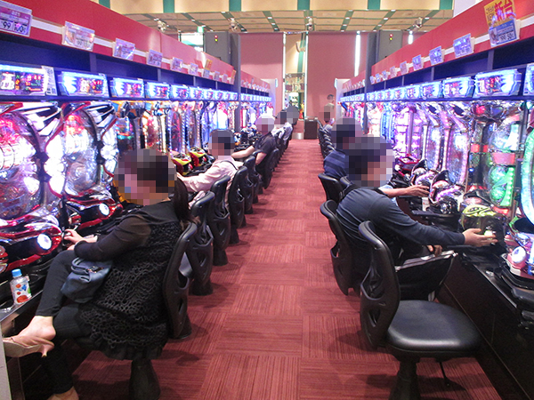 1円パチンコはシマ全体が高稼働。機種構成は豊富なラインナップを誇り、各々好みの機種を選んで遊技をおこなっていた。