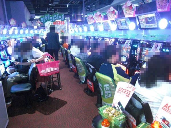 豊富なラインナップを誇る5円パチスロや2円パチンコ、1円パチンコといった低貸し玉コーナーの賑わいも大きく、さまざまな機種が楽しまれていた。