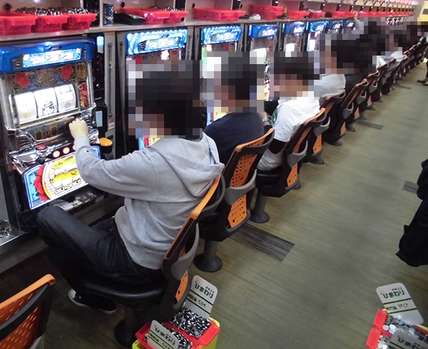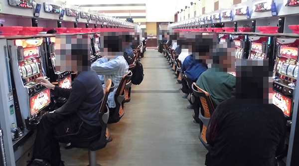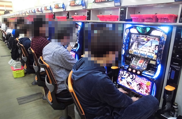 午後のパチスロをみると、「バジリスク~甲賀忍法帖~絆」や「沖ドキ!-30」が盛況。