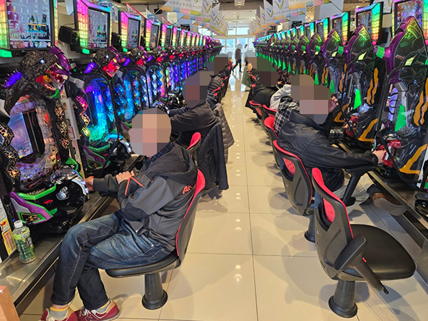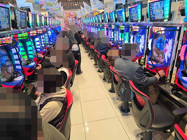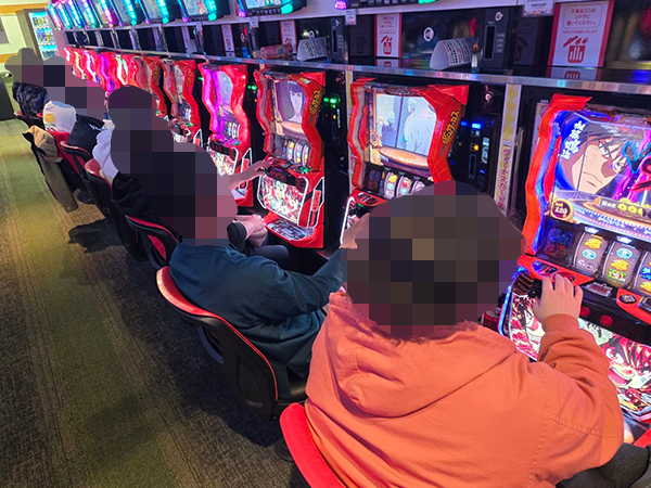 機種構成が魅力的な6円パチスロを見ると、ほぼ満席となるほどの支持を得ていた。