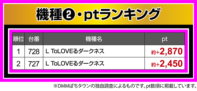 『L ToLOVEるダークネス』では、727番台と728番台が約+2,400ptを上回った。
