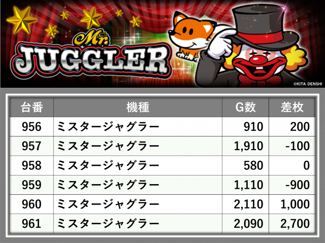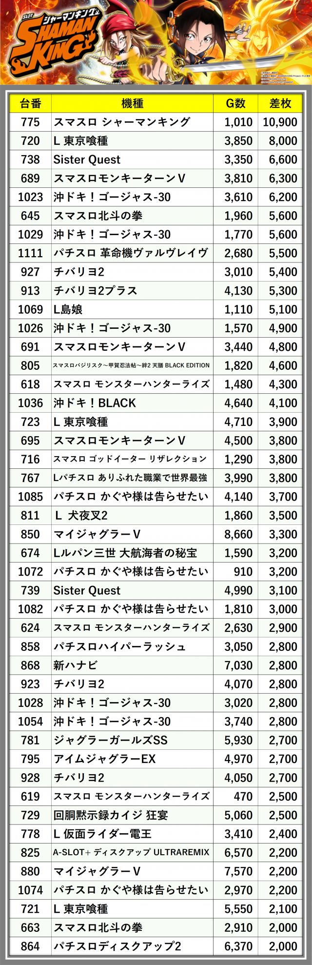厳選された取材対象機種をはじめ、その他スロット全体から好記録が飛び出した!プレイヤーが楽しんだ1日を下記データにて振り返ってみて欲しい。