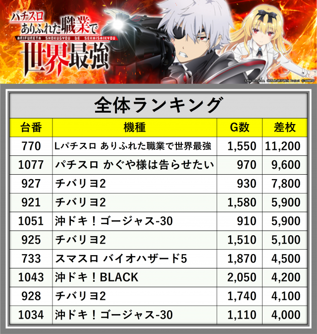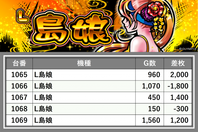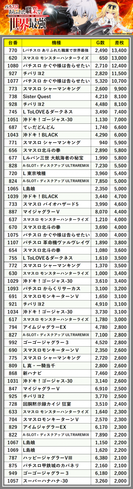 厳選された取材対象機種をはじめ、その他スロット全体から好記録が飛び出した!プレイヤーが楽しんだ1日を下記データにて振り返ってみて欲しい。