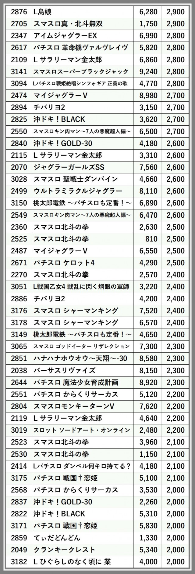 厳選された取材対象機種をはじめ、その他スロット全体から好記録が飛び出した!プレイヤーが楽しんだ1日を下記データにて振り返ってみて欲しい。