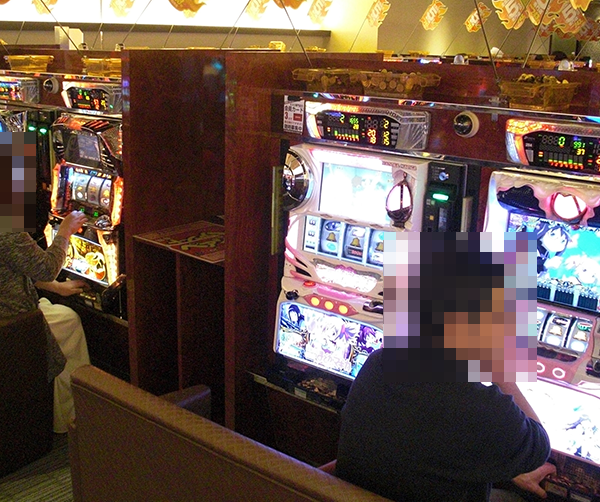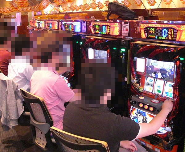 午後のホール内において目立っていたのが、「バジリスク~甲賀忍法帖~Ⅱ」と「SLOTバジリスク〜甲賀忍法帖〜Ⅲ」。満足度の高さがうかがえるほどに、華やかな光景が広がっていた。