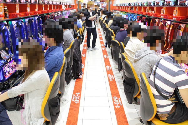 開店時間を迎え、4円パチンコでは「CRぱちんこ GANTZ」や「ぱちんこCR北斗の拳7 転生」、「CRぱちんこ必殺仕事人Ⅴ」が満席。