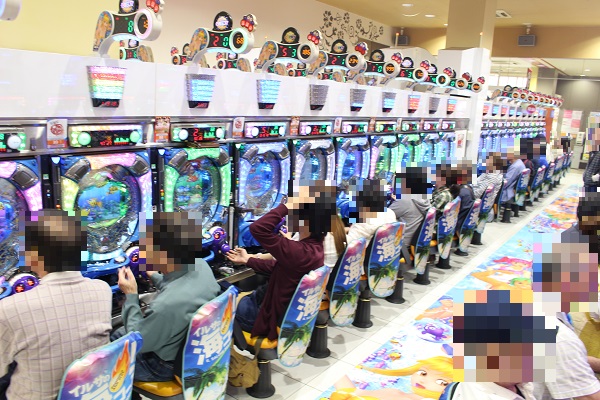 4円パチンココーナーでは、「ぱちんこCR北斗の拳7 転生」や「CRぱちんこ必殺仕事人Ⅴ」、「CRスーパー海物語IN沖縄4」といった人気定番機種は満台。