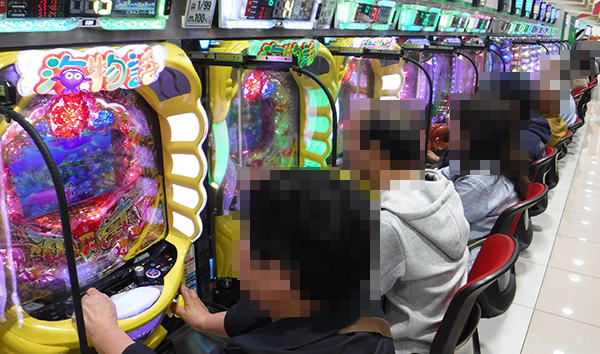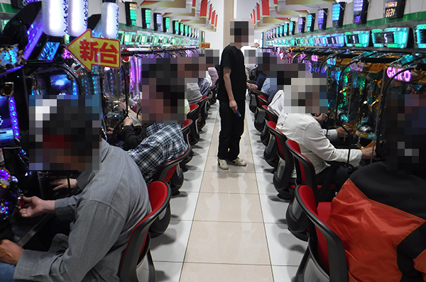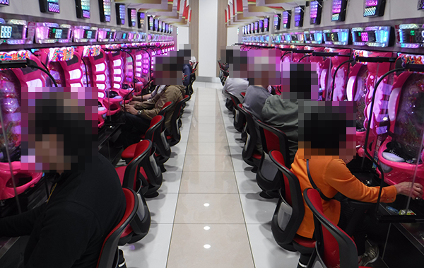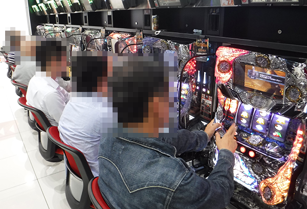 15時頃の4円パチンコでは、新台の「CRぱちんこ必殺仕事人Ⅴ」が盛況。満席となっているだけでなく、機種の性能を最大限まで引き出しているようなプレイヤーも多かった。