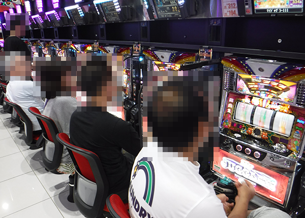 定番機種であるジャグラーシリーズにおいても、笑顔で遊技を楽しむプレイヤーが多い。