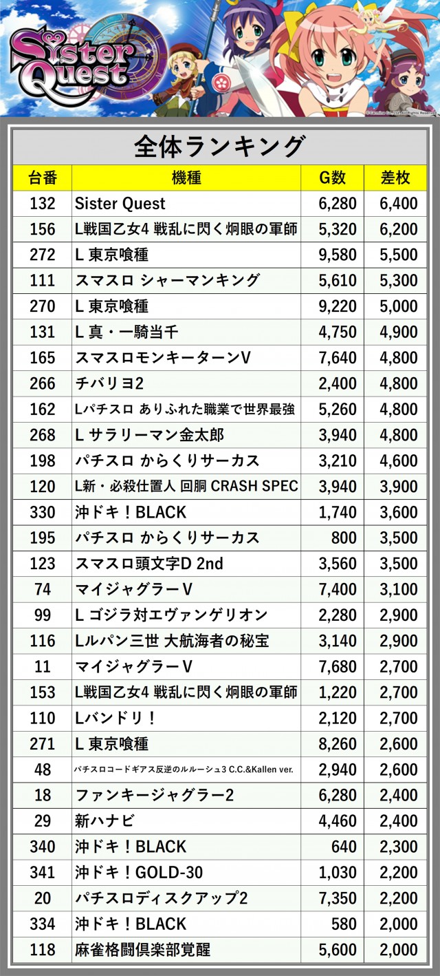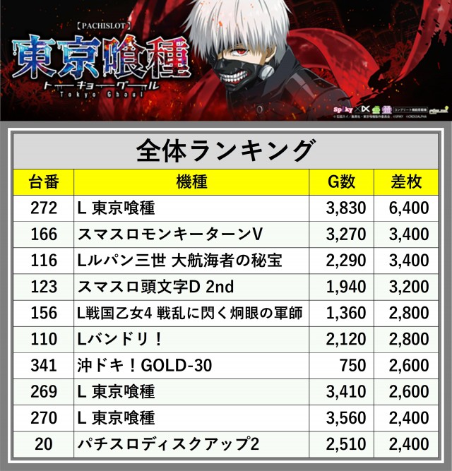 厳選された取材対象機種をはじめ、その他スロット全体から好記録が飛び出した!プレイヤーが楽しんだ1日を下記データにて振り返ってみて欲しい。