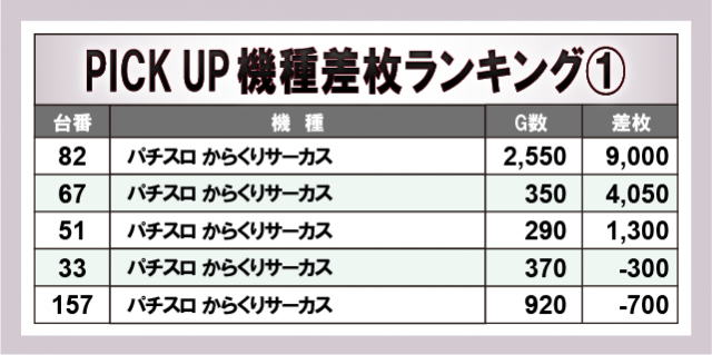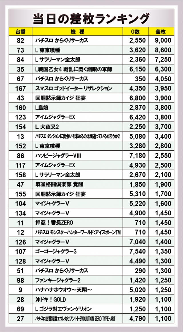 ※差枚数順に掲載しています。