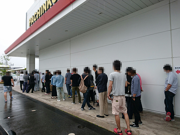取材日は145名とオープン前から多くのプレイヤーが集まり、開店直後は「バジリスク~甲賀忍法帖~絆」や「CRぱちんこ必殺仕事人Ⅴ」が人気を集めていた。