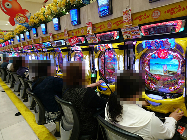 午後の4円パチンコでは、午前中に高い稼働率を維持した「CRぱちんこ必殺仕事人Ⅴ」を筆頭に、「ぱちんこCR北斗の拳7 転生」や「CRスーパー海物語IN沖縄4」が活況。