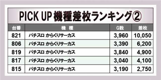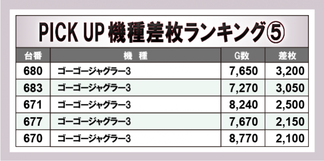 上表の5機種からまとまった出玉獲得台が多数発生し、ファンが自信をもってレバーを叩いていた様子が目に浮かぶ。またスマスロ機からノーマルタイプまでいずれも同店が丁寧に扱っていると窺うことができ、今後も要注目のエリアなのは間違いないだろう。