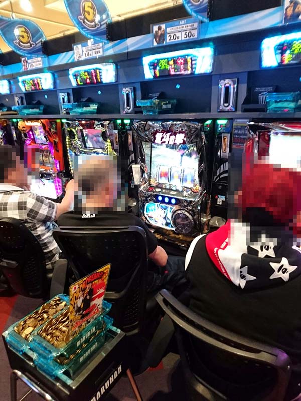 5円パチスロの人気も高く、「パチスロ北斗の拳 修羅の国篇」や「SLOT魔法少女まどか☆マギカ2」で、満面の笑みを浮かべながら遊技するプレイヤーを確認済み。