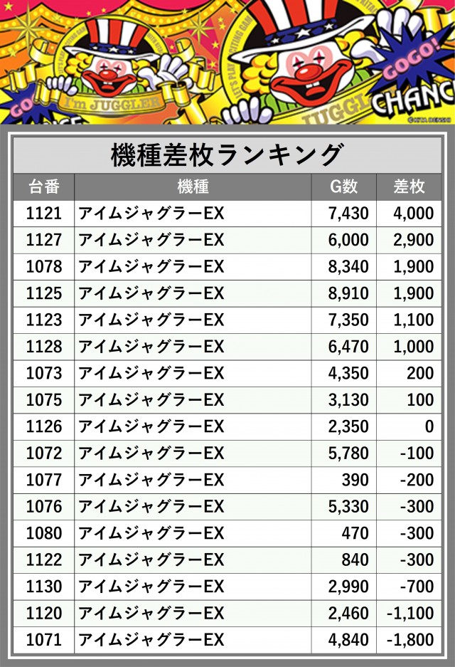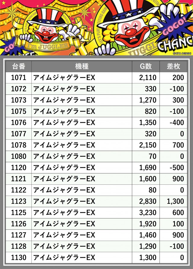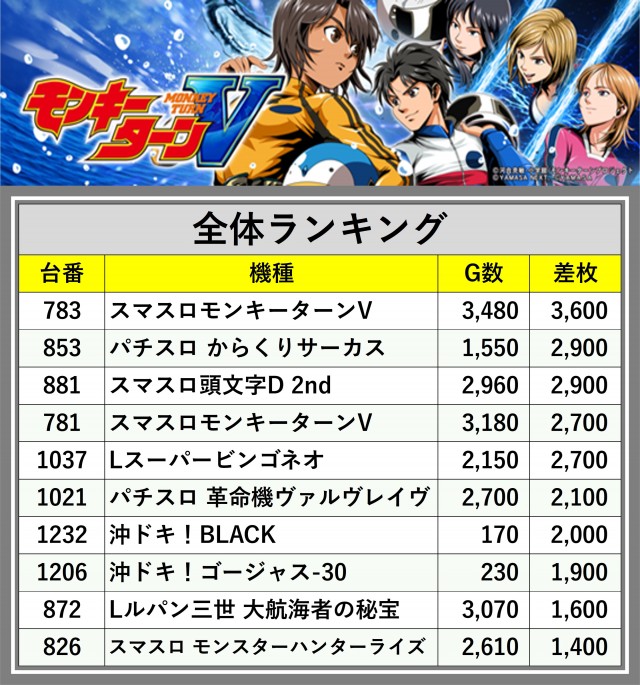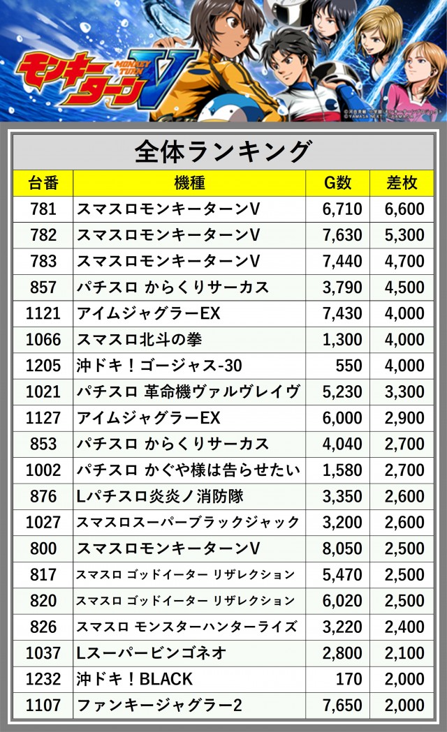 厳選された取材対象機種をはじめ、その他スロット全体から好記録が飛び出した!プレイヤーが楽しんだ1日を下記データにて振り返ってみて欲しい。