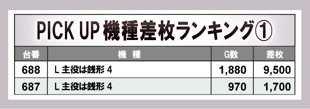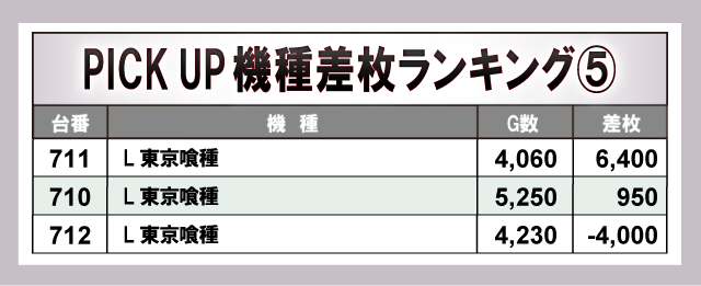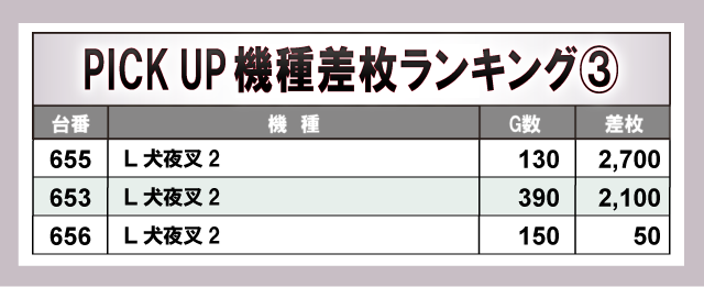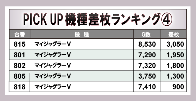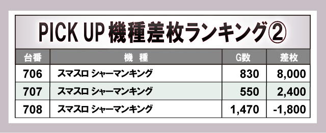 PICKUP機種のほとんどがスマスロという結果だったが、唯一その中にノーマル機の『マイジャグラーⅤ』が入っていた。PICKUP機種はどれも素晴らしい結果であることは間違いないが、特に『マイジャグラーⅤ』からは好調台を多く確認することができ、同店が力を入れていることが窺えた。