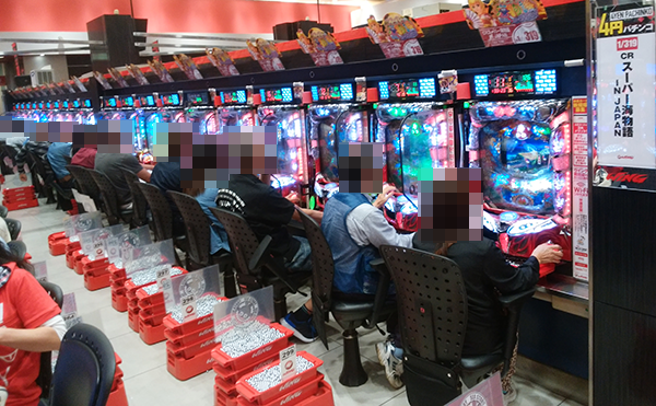 にぎわいが感じられる店内には大勢のプレイヤーが集まっており、貸し玉料金を問わずに活気づいていた。