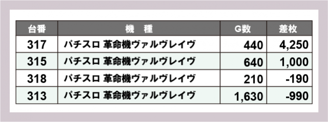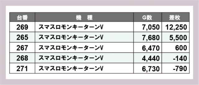 ※差枚数順に掲載しています