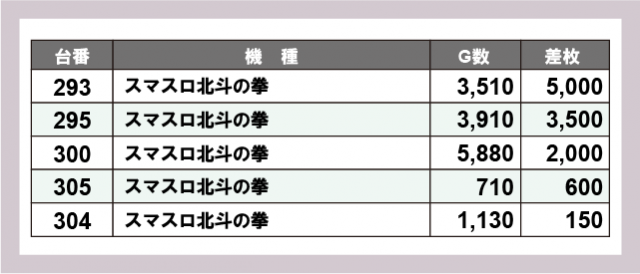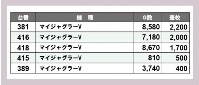 ※差枚数順に掲載しています