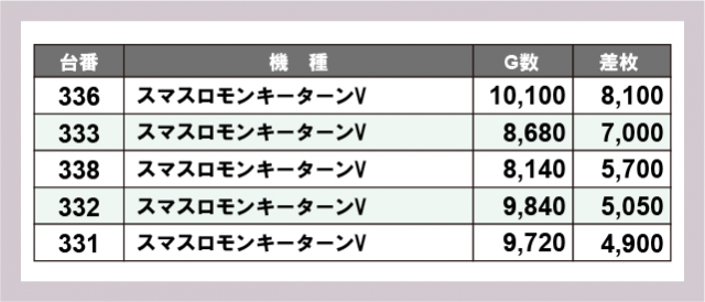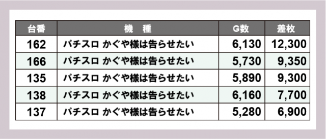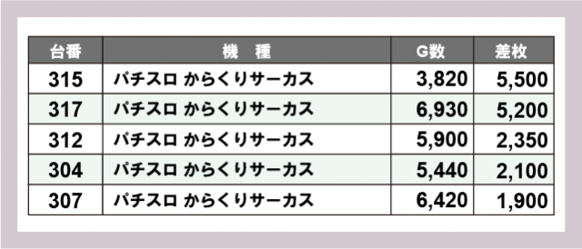 ※差枚数順に掲載しています