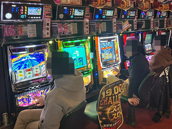 「パチスロ ダンジョンに出会いを求めるのは間違っているだろうか2」や「パチスロガメラ」で華麗なパフォーマンスを披露するプレイヤーが見られ、シマ内からは活気が感じられた。