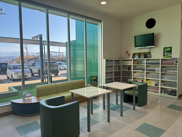 開放感抜群のレストスペースには漫画本やテレビが用意されており、誰もがリフレッシュできることだろう。