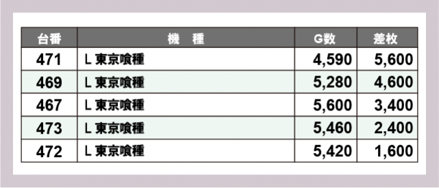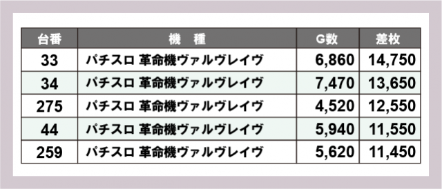 ※差枚数順に掲載しています