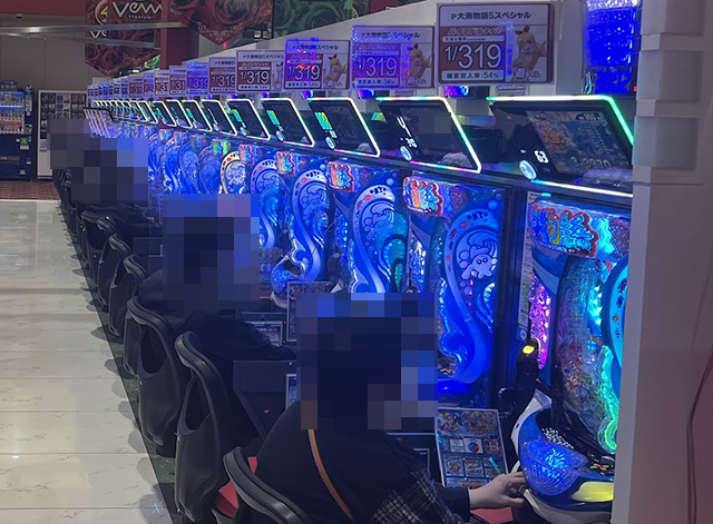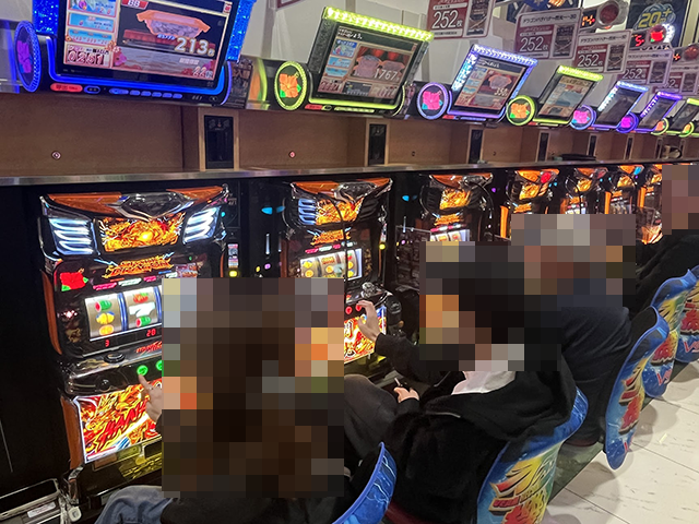 店内をみてみると、パチスロとパチンコの両方で、プレイヤーたちがうれしそうに遊技をおこなっていた。