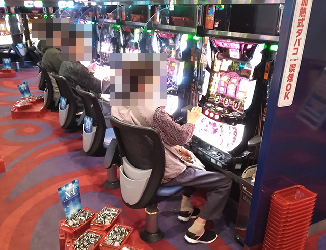 8箱以上や5箱以上の持ち玉を使い、うれしそうに遊技をおこなっていた。
