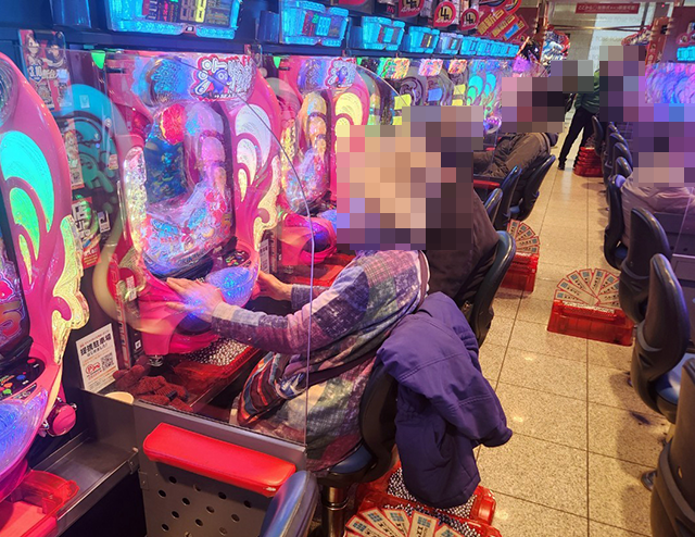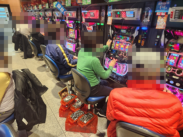 15時を過ぎた時点で、5箱以上の持ち玉を使って遊技をおこなう姿があった。
