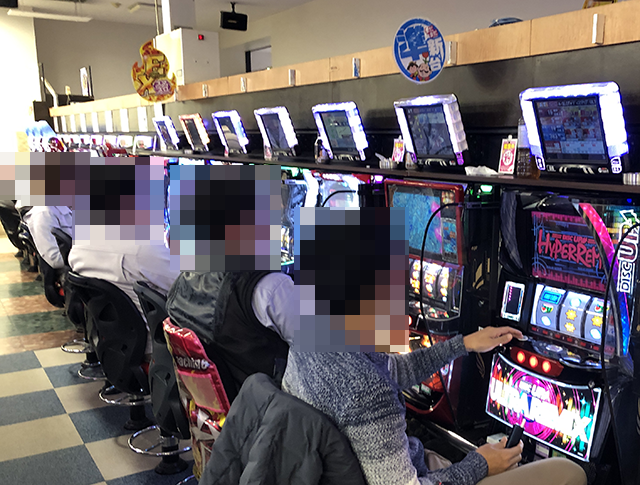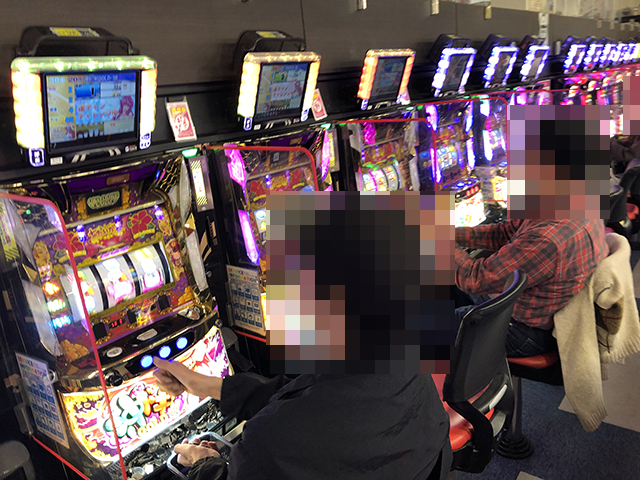 店内をみてみると、パチンコとパチスロの両方で、プレイヤーたちが楽しそうに過ごしていた。