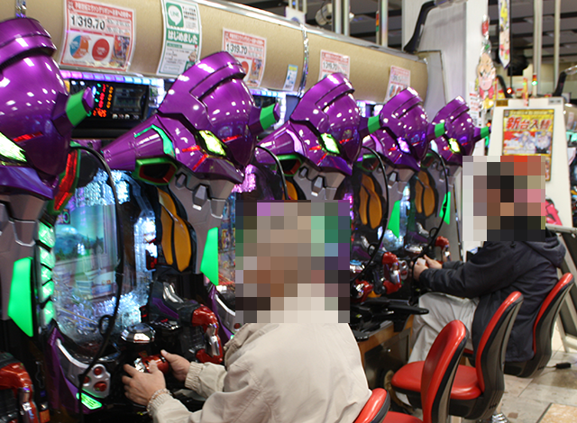 パチンコをみてみると、「Pスーパー海物語 IN 沖縄5」や「新世紀エヴァンゲリオン〜未来への咆哮〜」で、プレイヤーがうれしそうに遊技中。