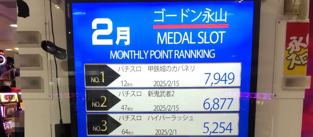メダル機では『パチスロ甲鉄城のカバネリ』も負けていない。+3,600枚超・+3,100枚弱・+3,000枚弱が1台ずつと、堅実な結果を残した。