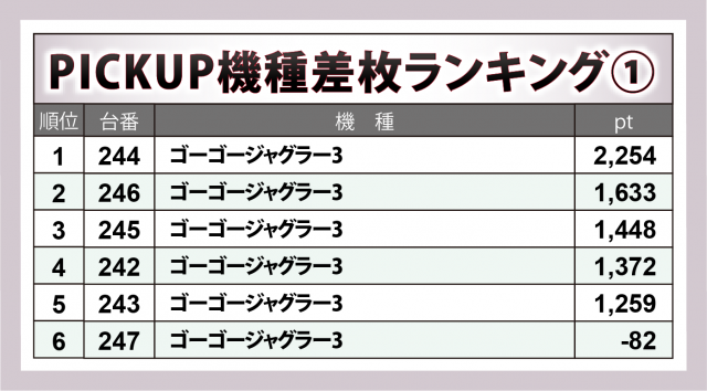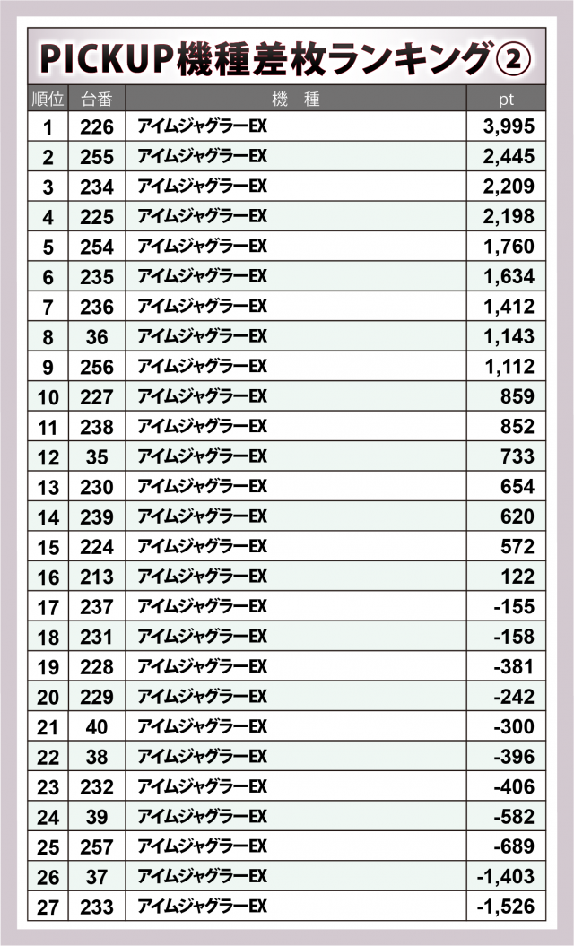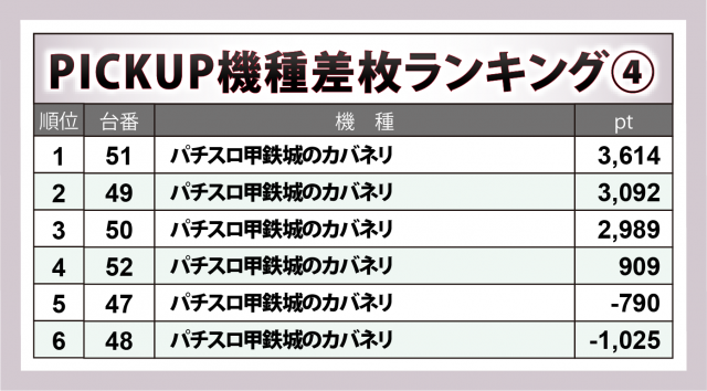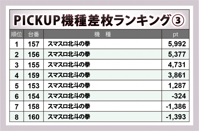 +3,000枚以上は16台、+4,000枚以上は8台、+5,000枚オーバーは3台と、限られた営業時間で中々のレベルとなった。