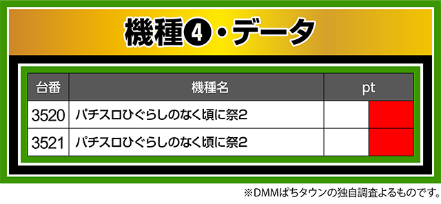 『パチスロひぐらしのなく頃に祭2』も活気は大きく、3520番台と3521番台がプラスを記録した。