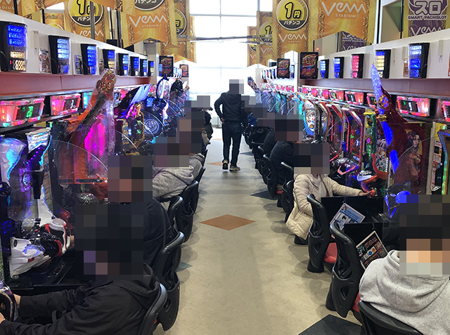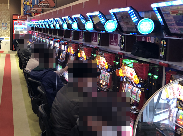 14時過ぎのパチスロコーナーでは、充実した様子で遊技するプレイヤーの姿が多くみられた。
