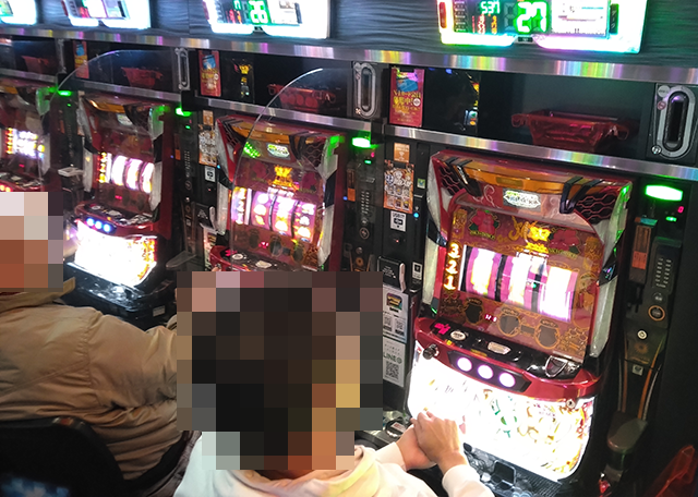 ハナハナシリーズもにぎわっており、「ドラゴンハナハナ~閃光~ 30」にボーナス回数が39回の台があった。