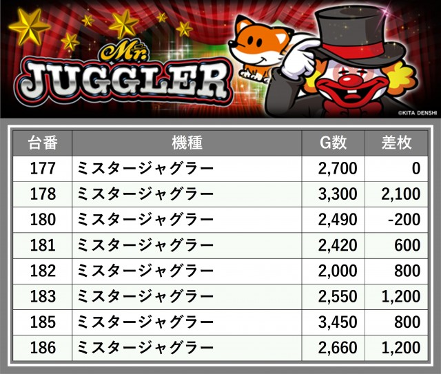 厳選された取材対象機種をはじめ、その他スロット全体から好記録が飛び出した!プレイヤーが楽しんだ1日を下記データにて振り返ってみて欲しい。