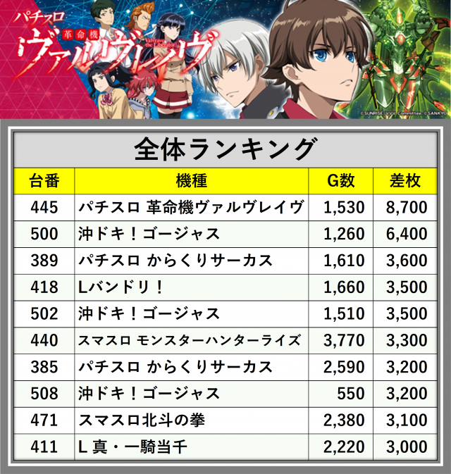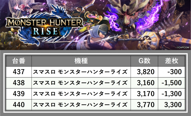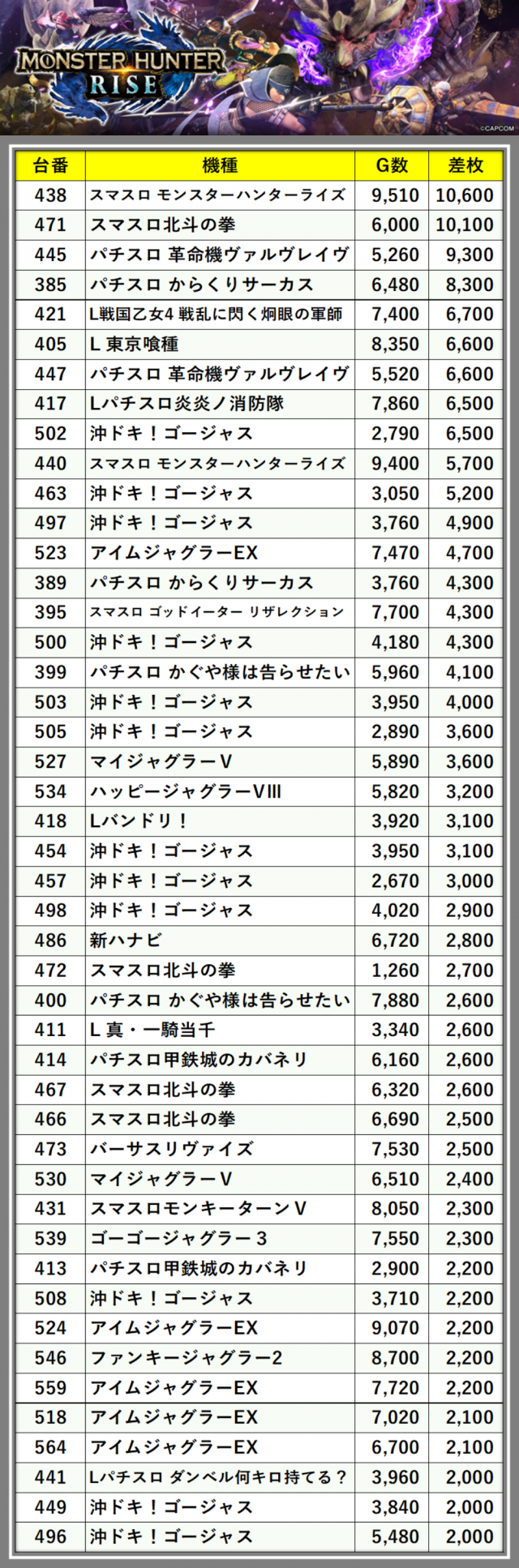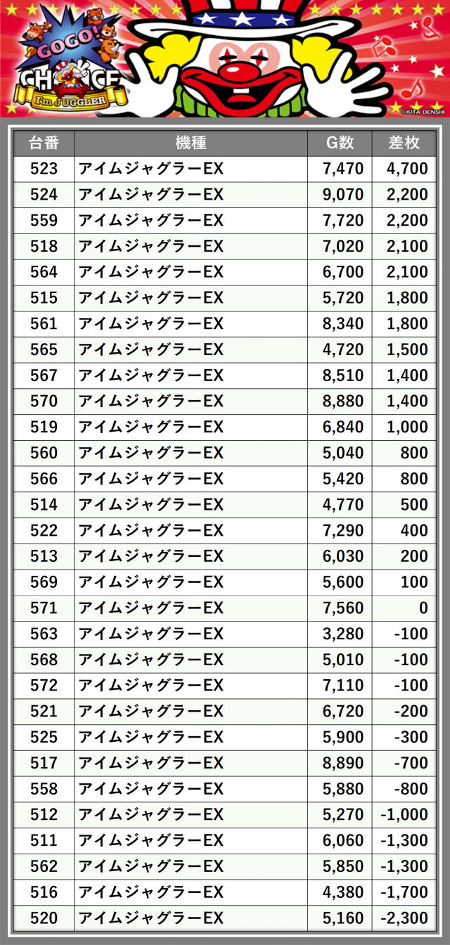 厳選された取材対象機種をはじめ、その他スロット全体から好記録が飛び出した!プレイヤーが楽しんだ1日を下記データにて振り返ってみて欲しい。