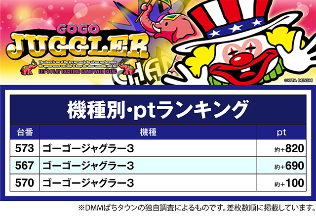 「ゴーゴージャグラー3」は、3台がプラスを記録。