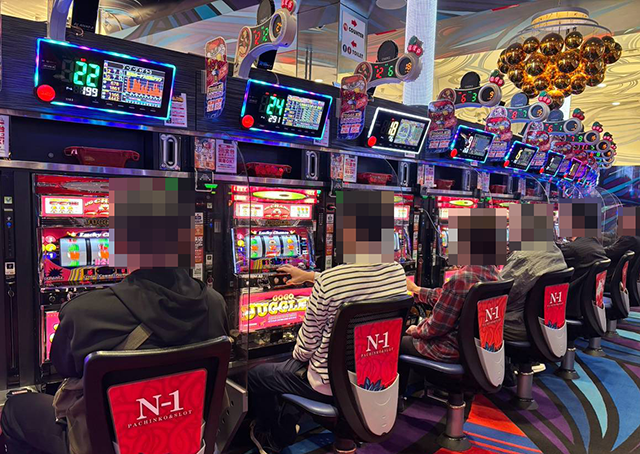 ホール全体が活気にあふれ、多彩な機種で遊技を満喫するプレイヤーの明るい笑顔が広がっていた。